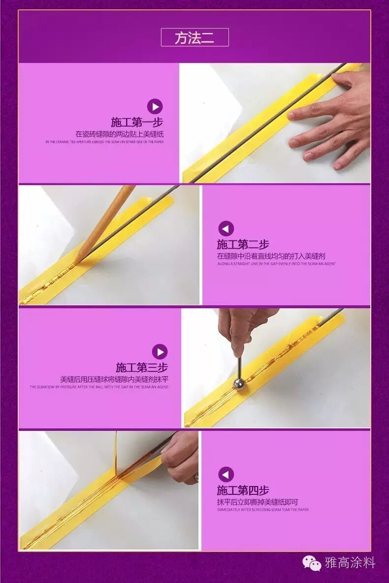 ①预留砖缝:可填缝也可以不填,如填缝需要等填缝材料完全干透,方可进行缝美家真瓷胶施工,缝深最少是3mm左右;