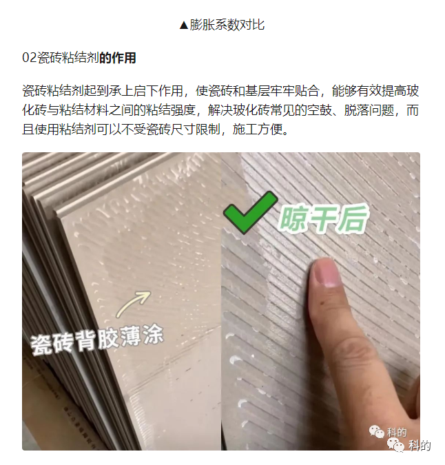 瓷砖背面必须要保持干净、干燥,无任何浮灰、粉尘,亦无任何水渍。