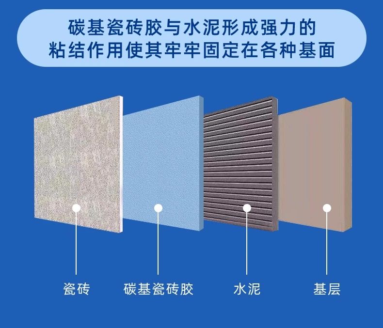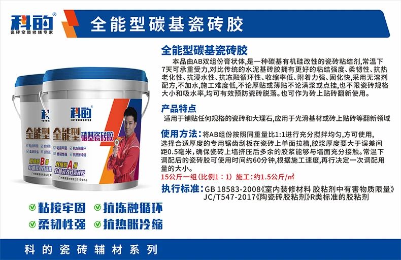 科的碳基瓷砖胶有强大的渗透与粘结能力,直接作用于瓷砖背面,