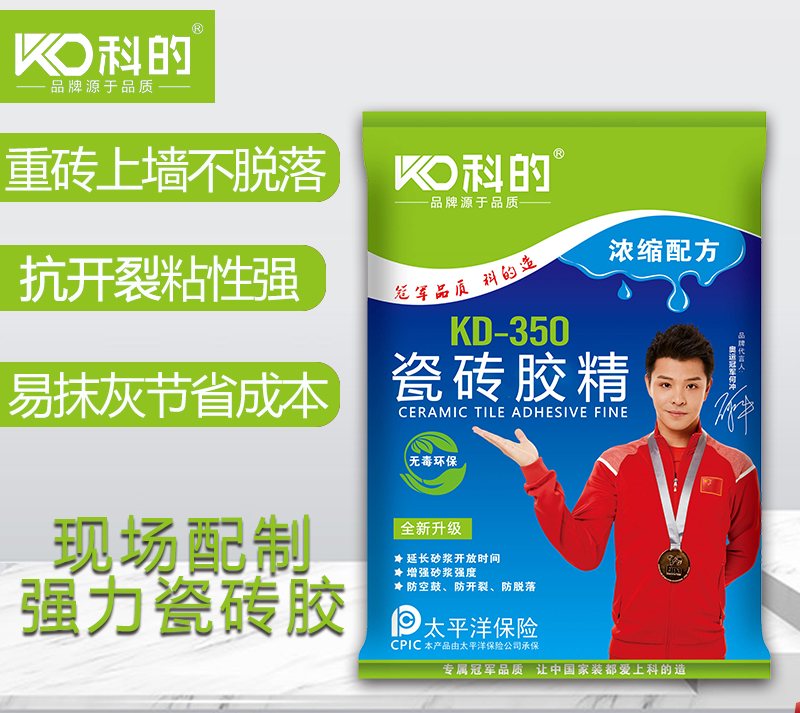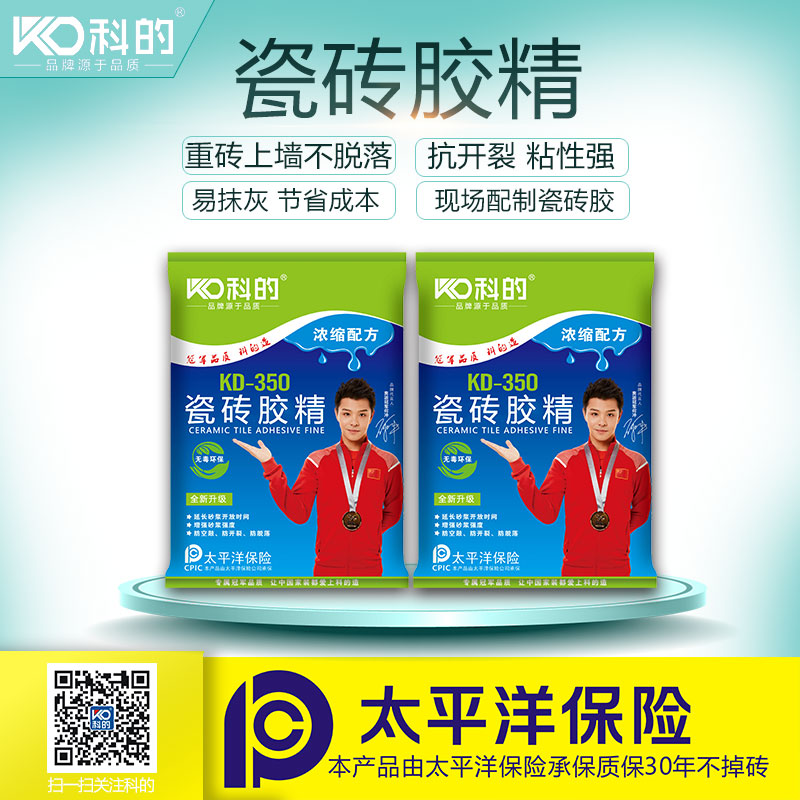 科的瓷砖胶精突破市场现有的瓷砖胶里单独添加纤维素、乳胶粉等体系,采用了一种欧洲先进的特殊聚合物。