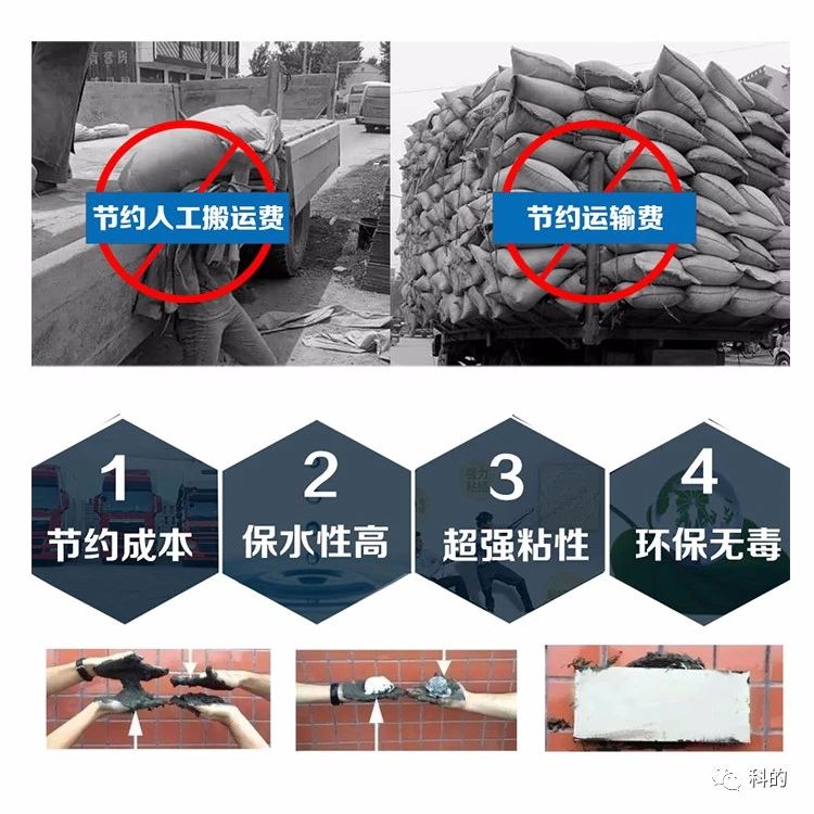 |可代替瓷砖胶粘剂,具有低成本、可厚贴、粘结牢固等优势。