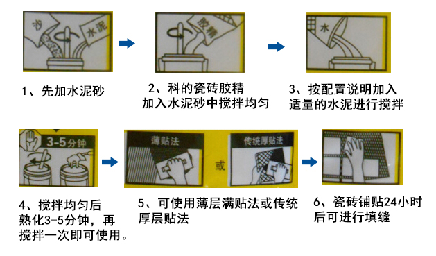 科的瓷砖胶精利用装修现场的水泥砂子可配制出强力型瓷砖粘结剂。