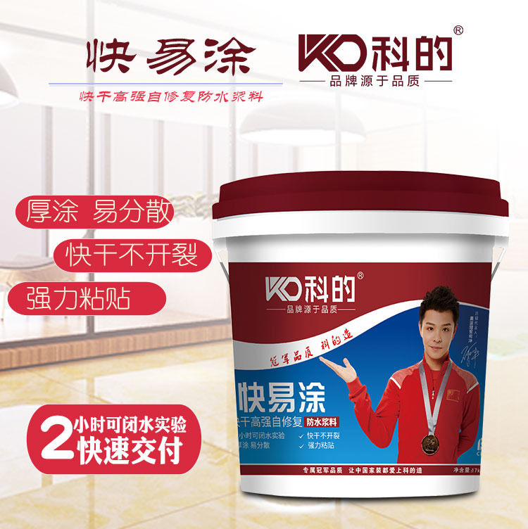 科的快易涂防水不但适用于厨卫间、阳台等部位,同样适用于饮用水箱、游泳池等的防水处理。科的所有防水产品均采用符合相关标准的环保助剂生产。