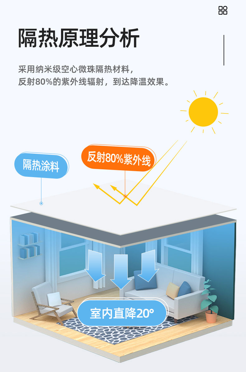 炎热的夏季快要来临,住顶层的朋友给们又着急了,屋顶耐不住高温,室内闷热至极,住户有种被蒸煮的感觉,那真叫一个难受啊!莫要慌,这里有一种降温材料,可以带给您清凉一夏,那就是科的反射隔热涂料。下面我们就来详细的看看这是怎么样的一种材料吧。