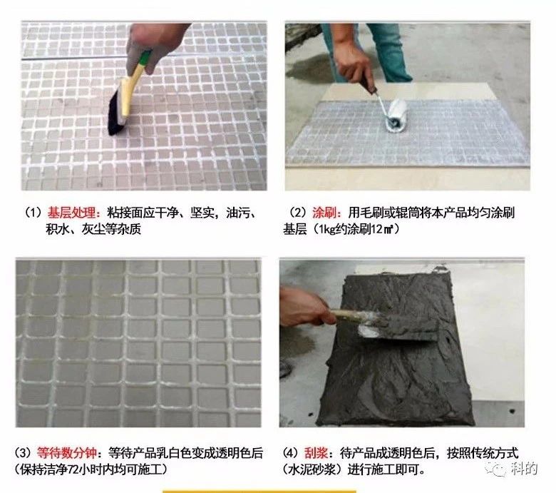4、不同的瓷砖粘结剂使用方法不同,使用前要阅读产品标注的使用方法和注意事项的说明。