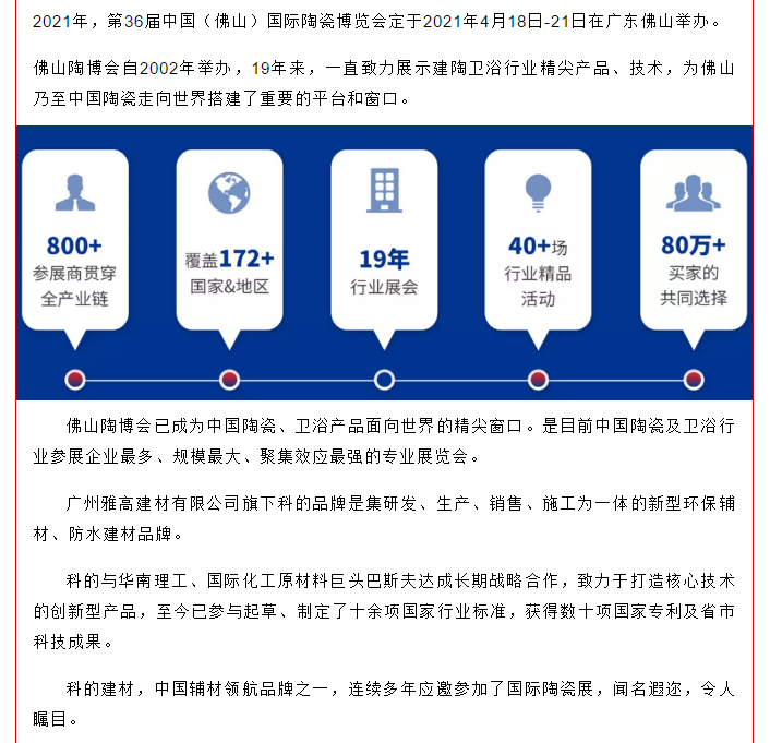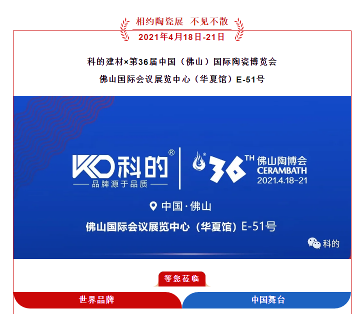 匠心筑品质,品牌赢未来,第36届佛山陶博会(华夏馆E-51馆)科的与您相约!