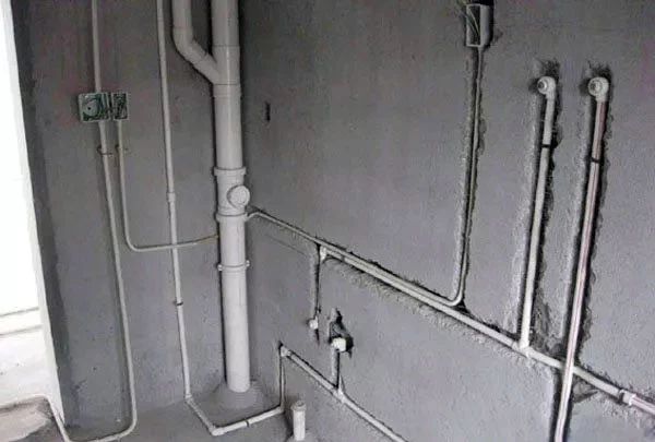 施工过程中在管道、地漏等穿越楼板时,其孔洞周边的防水层必须认真施工。墙体内埋水管,做到合理布局,铺设水管一律做大于管径的凹槽,