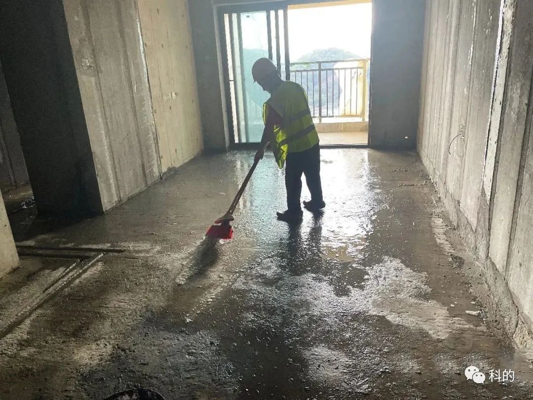 A、施工基面:清扫底板浮沉土,必须去掉凹凸不平的颗粒和松散杂物杂质,平整结实,无空鼓,同时底材不能有油污油脂和蜡质,待表面干洁后,方可开始施工。