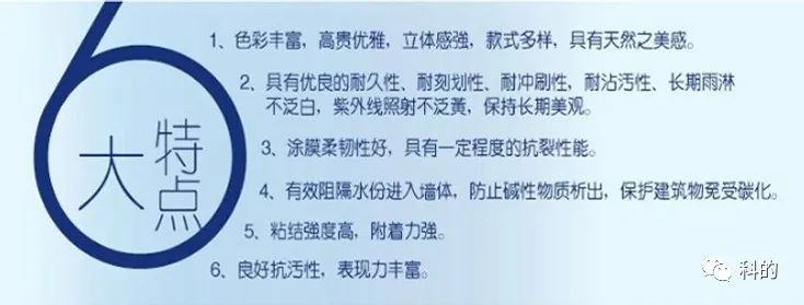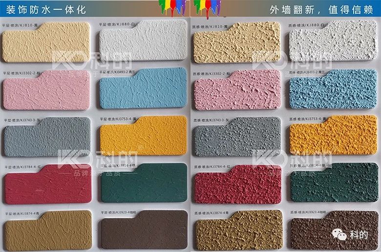 科的外墙防水装饰一体化,针对外墙老化、开裂、渗水、脱落等系列问题,专门开发了具有针对性外墙翻新的涂料产品。