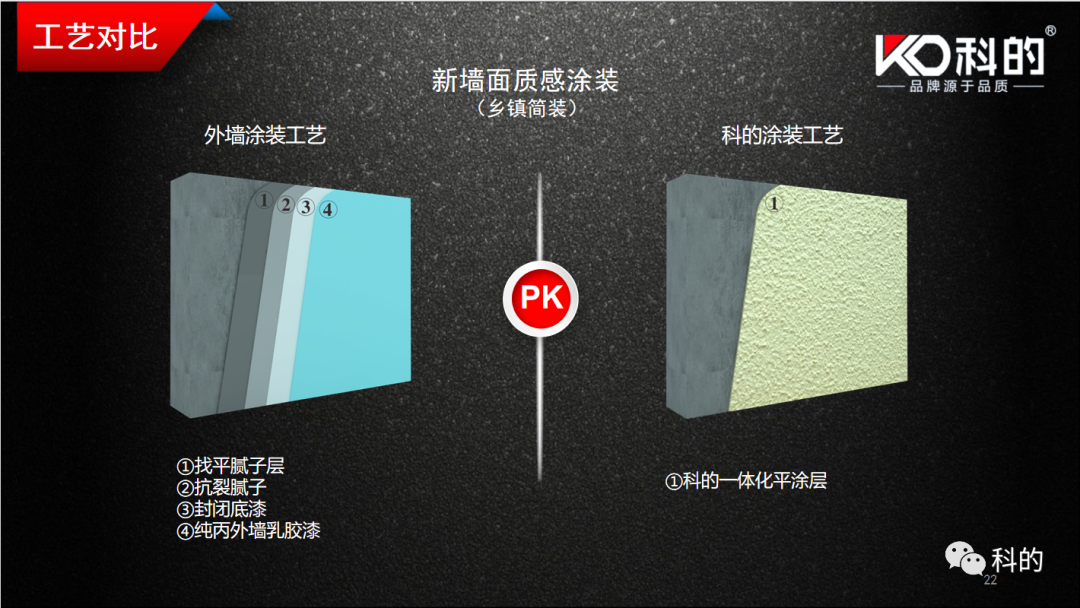它可直接在各类旧饰面 翻新涂装,墙面防水、饰面一次成型,免腻子 找平、免封闭底漆、免罩面,大幅简化传统的 施工流程。