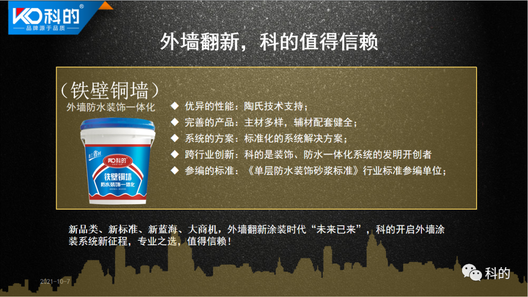 “如何通过外饰面,让老建筑焕然一新的同时,获得全新的生命力?”科的针对外墙翻新项目量身制定了“防水、装饰一体化系统”的的灵魂!