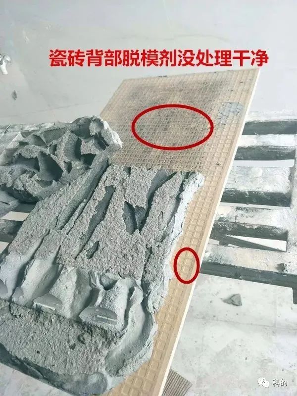 即使使用了强力瓷砖粘结剂,也不会达到更好的粘贴效果。因为中间还夹着一层膜:脱模剂。
