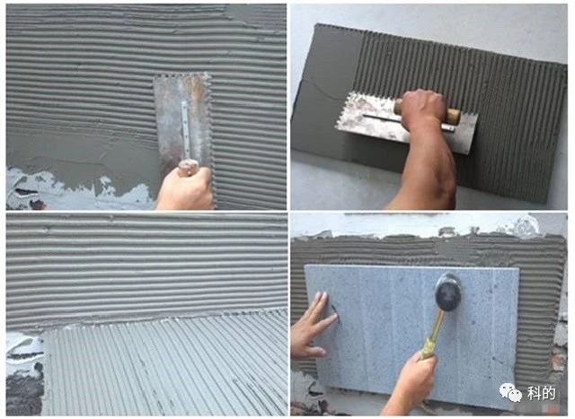 瓷砖的吸水率低,单一的水泥砂浆固化速度太快,从而引起瓷砖空鼓脱落,必须在水泥砂里面添加了科的强力砂浆胶,
