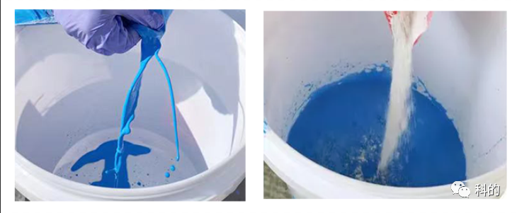 科的家人在尝试了两种制备方法的时候发现到,在先放粉料,再放乳液的情况下,不管如何搅拌都难免会出现结块,这种结块出现对防水效果是会有很大的影响的。