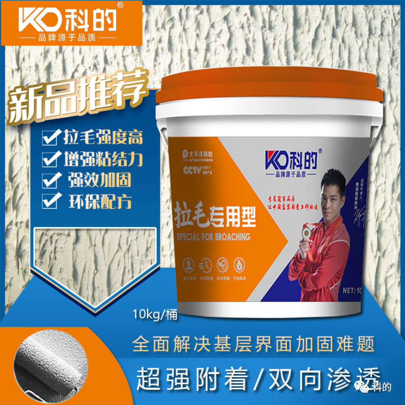 科的拉毛剂专用型为绿色环保产品,由粉料及液料组成,基粉料由水泥、精制砂及改性剂混合而成,液料由聚合物乳液及改性剂等混合而成,