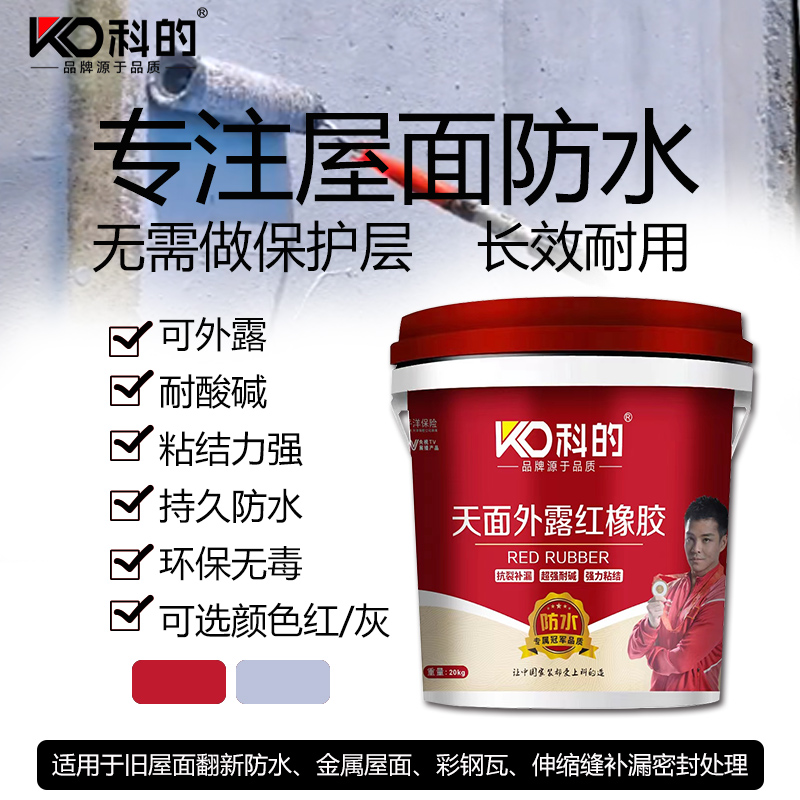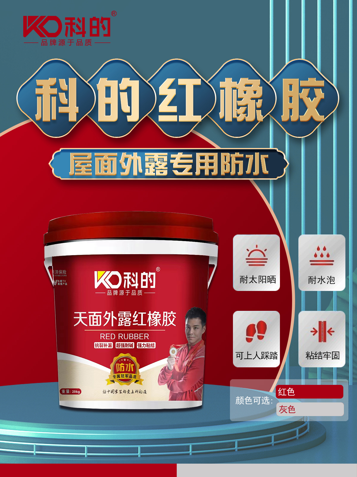 防水材料质量是保证屋面防水工程质量的关键,使用质量低劣和假冒伪劣的产品缩短屋面使用寿命,重复维修,增加整体维护成本高等。而对于这一系列问题,科的红橡胶外露型防水都可以完美地解决。